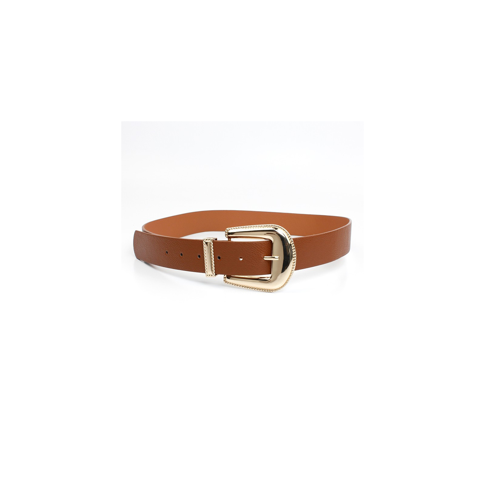 Cinturón importado de Pu con hebilla dorada.