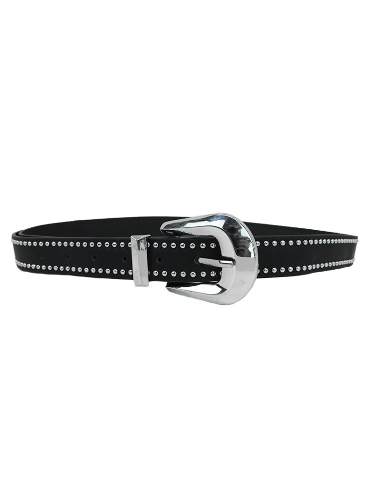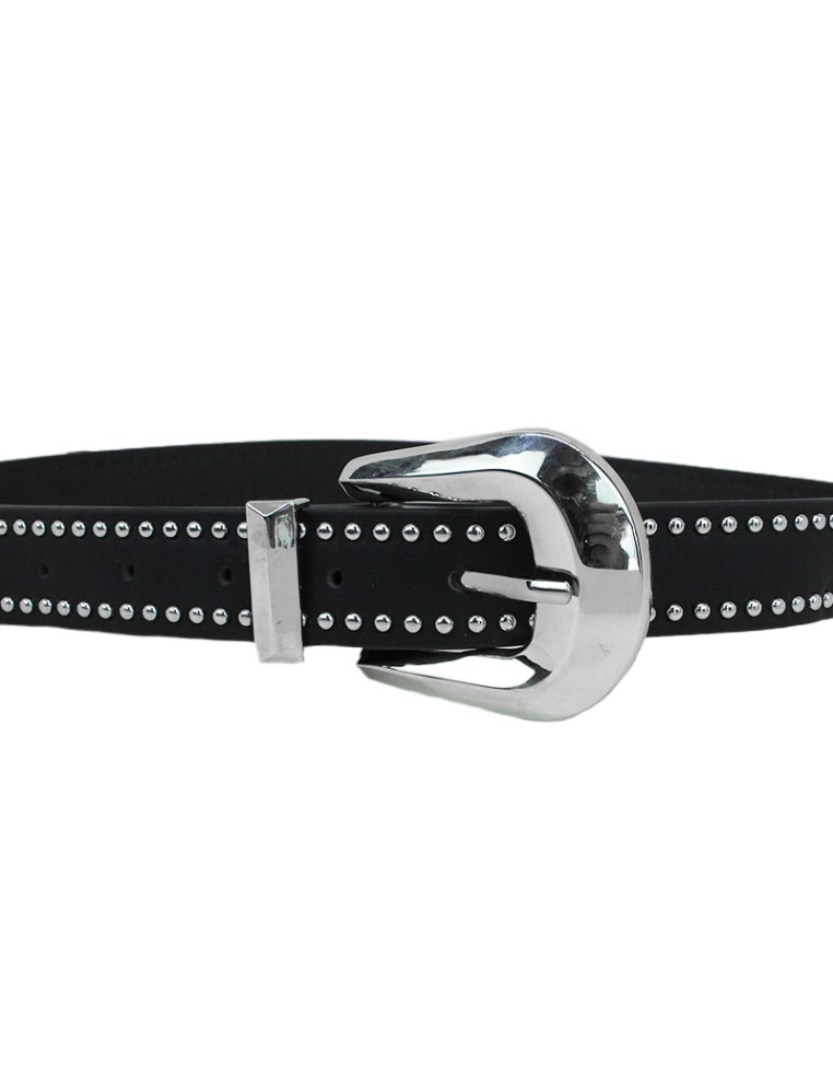 Cinturón de PU con hebilla con múltiples tachas níquel.