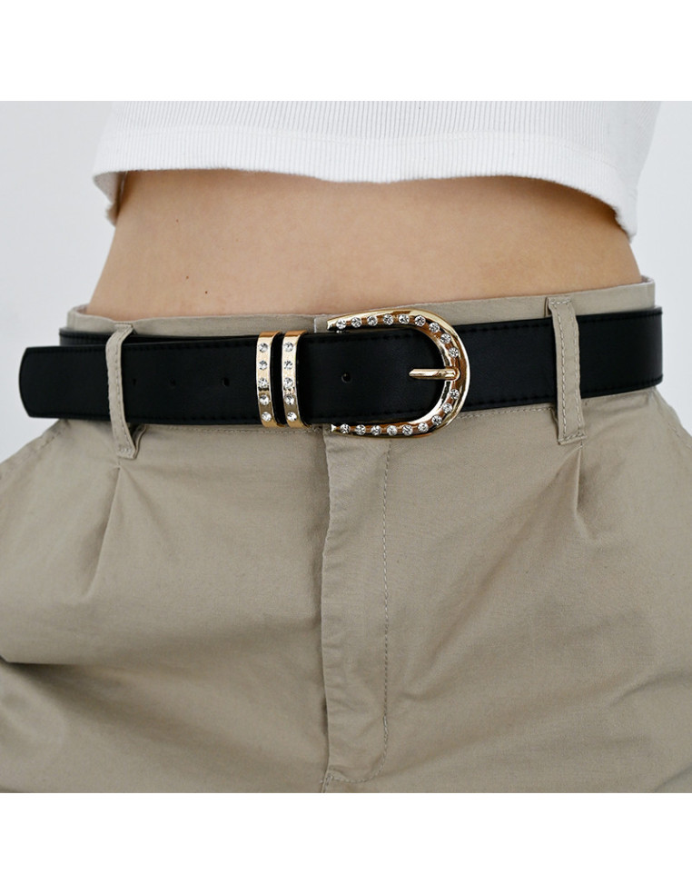 Cinturón liso de PU con hebilla dorado.