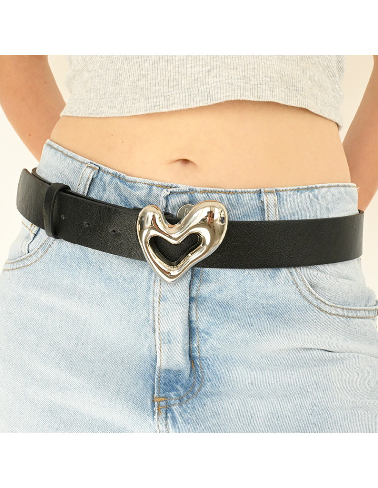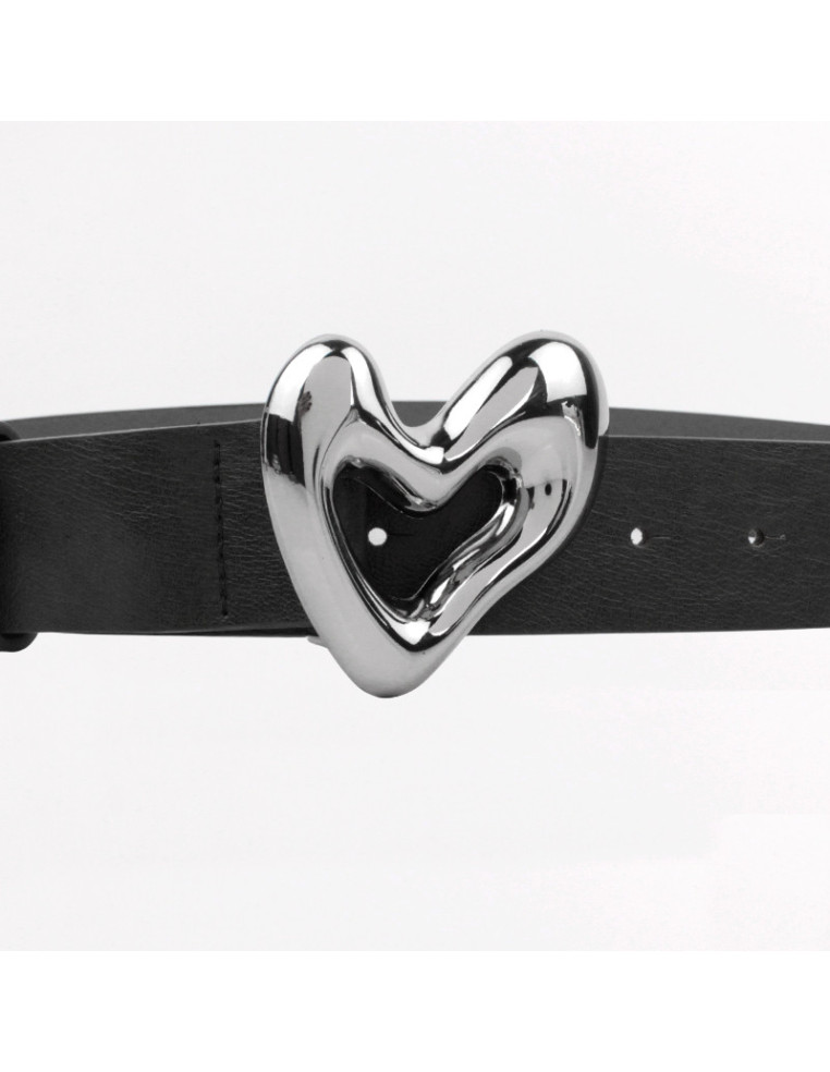 Cinturón de PU con hebilla exclusiva níquel con forma de corazón.