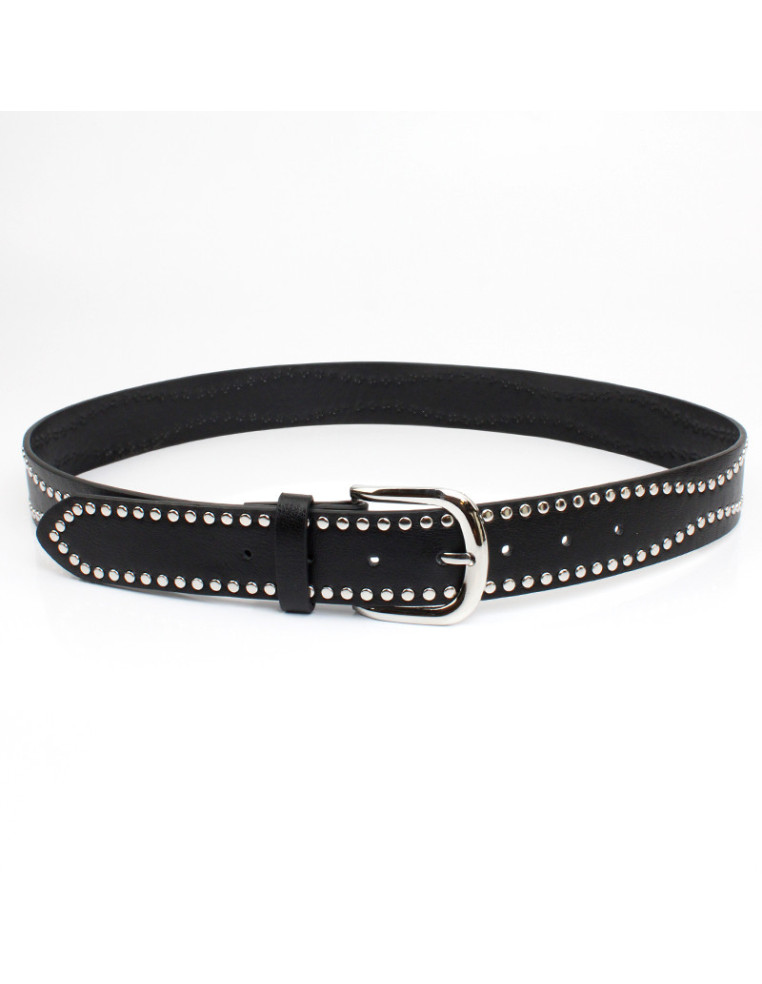Cinturón de PU con tachas y hebilla níquel.Medidas: 109cm x 3,5cm.