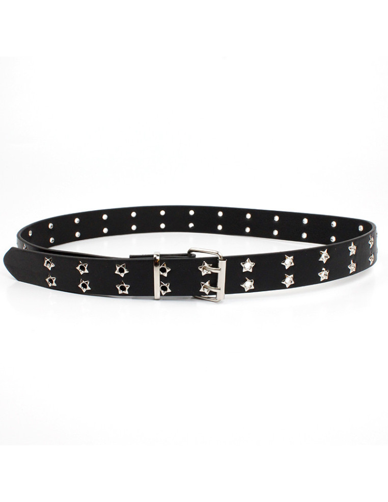 Cinturón importado de PU con tachas con forma de estrellas y hebilla níquel. Medidas: 110 x 3cm aprox.