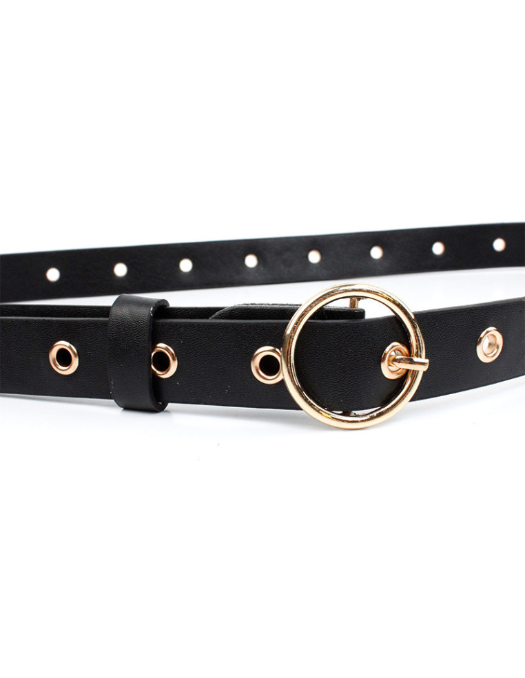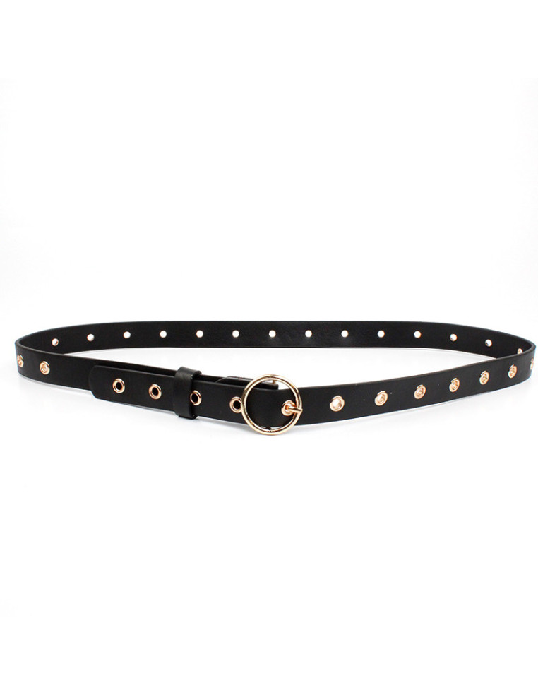 Cinturón importado de PU con tachas y hebilla dorado.Medidas: 110 x 2,5cm aprox.