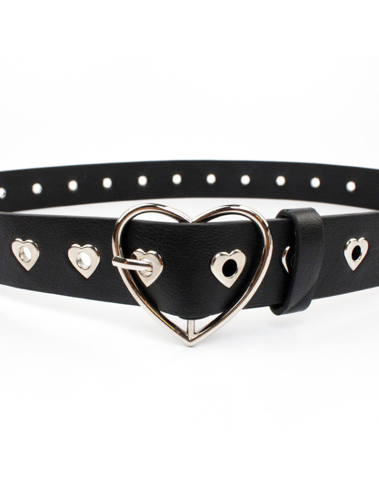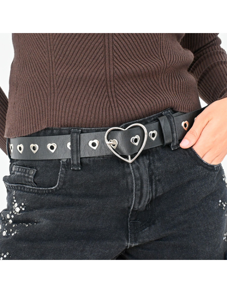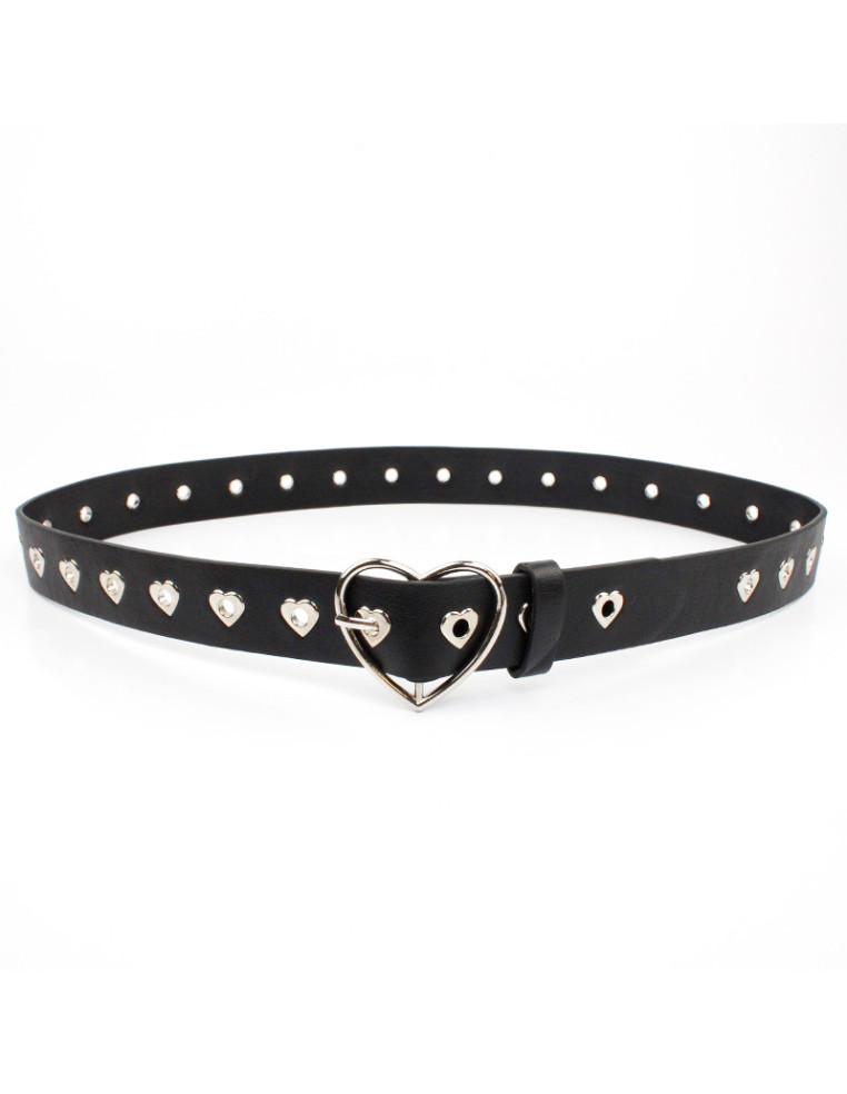 Cinturón importado de PU con tachas y hebilla níquel en forma de corazón.Medidas: 110 x 3,3m aprox.