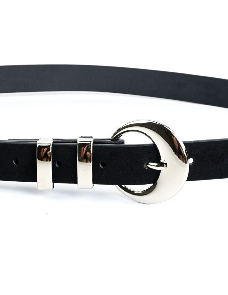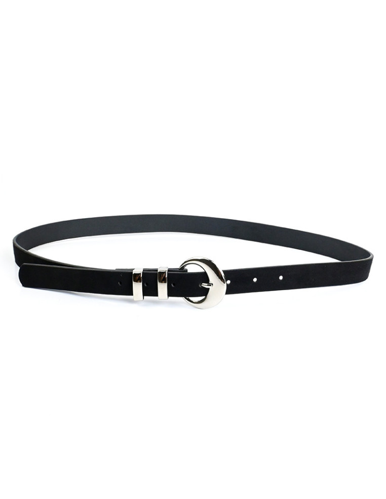 Cinturón de PU gamuzado y habilla níquel.