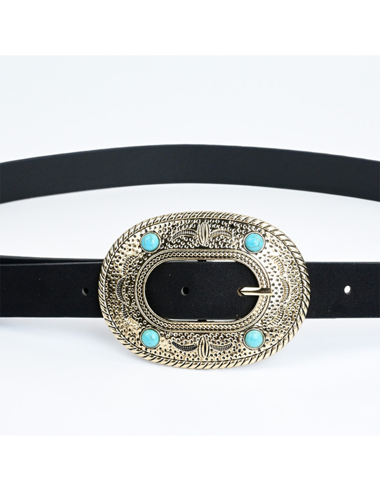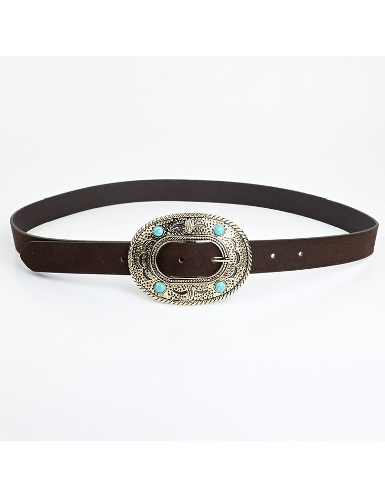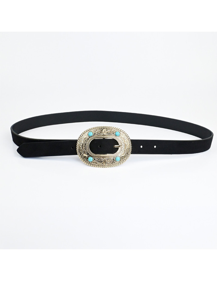 Cinturón faja de PU gamuzado y habilla dorada.