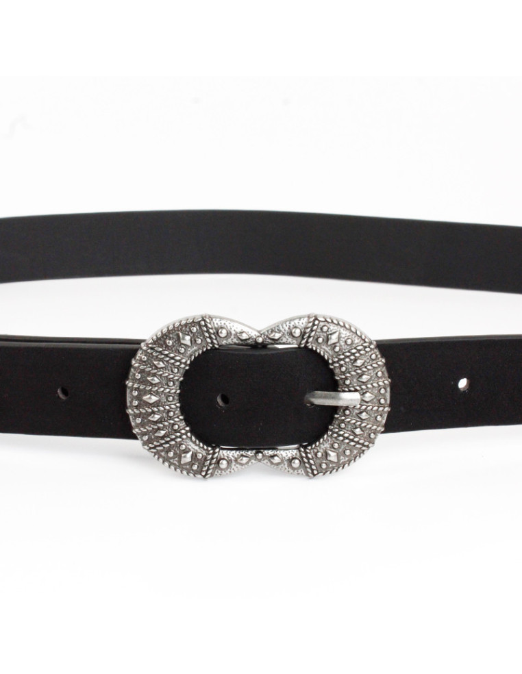 Cinturón de PU gamuzado y habilla níquel.