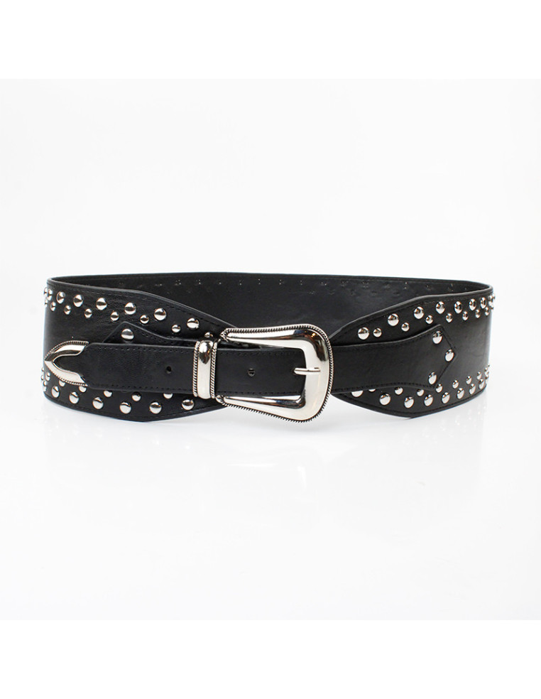Faja de pu con tachas y hebilla boho. Medidas: 107cm x 8cm