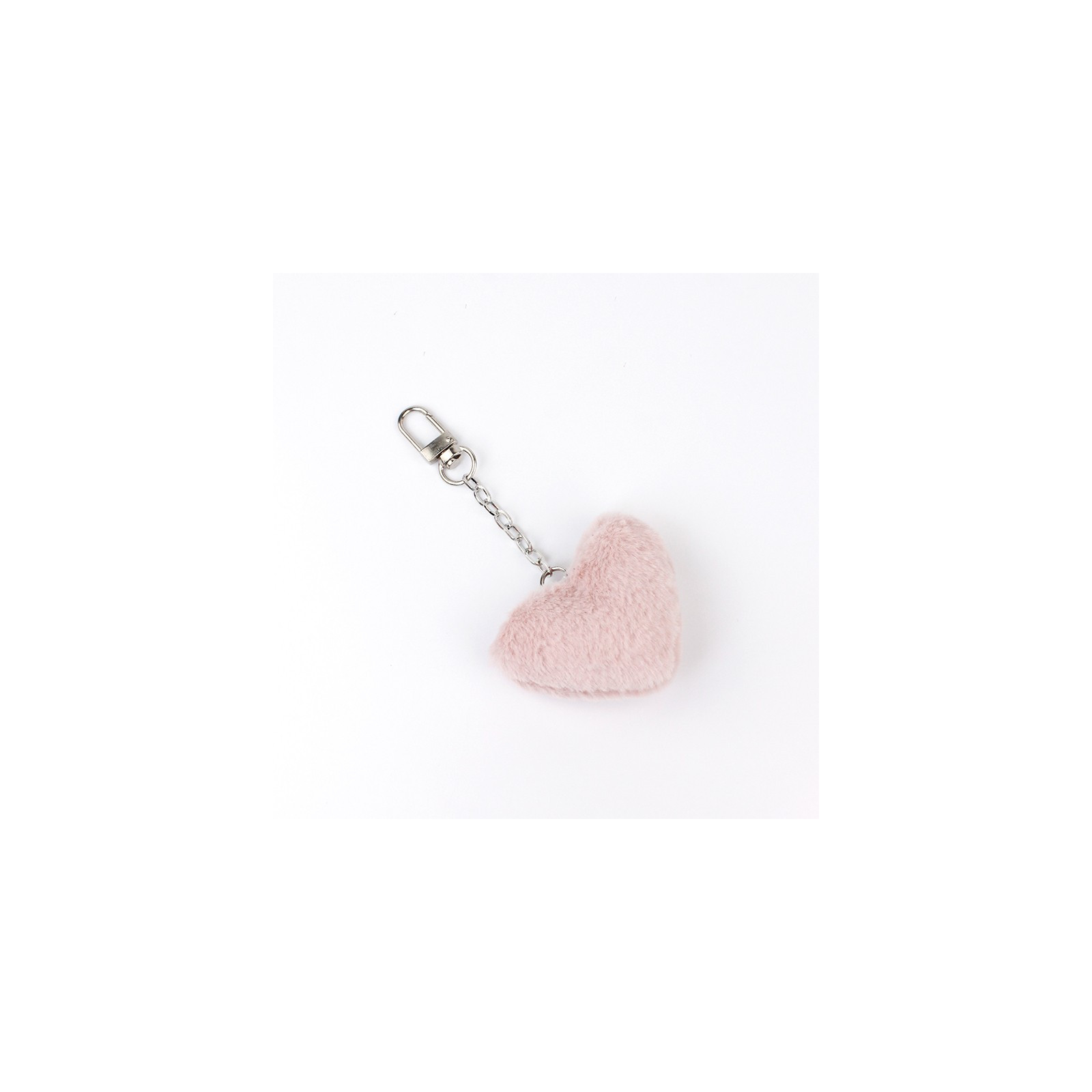 Llavero y bag charm de peluche con forma de corazón y cadena diferenciada níquel.