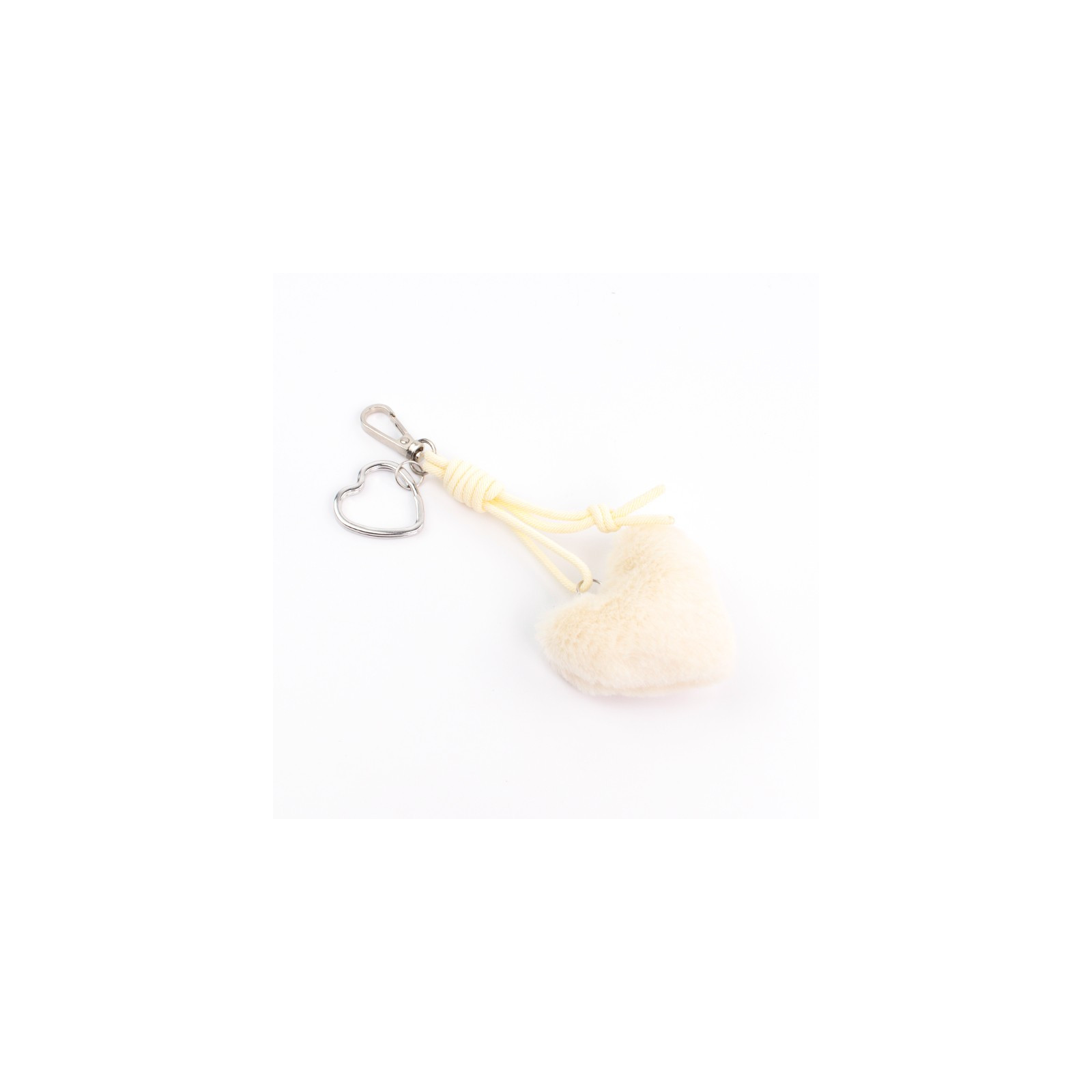 Llavero y bag charm de cordón exclusivo y peluche con forma de corazón.