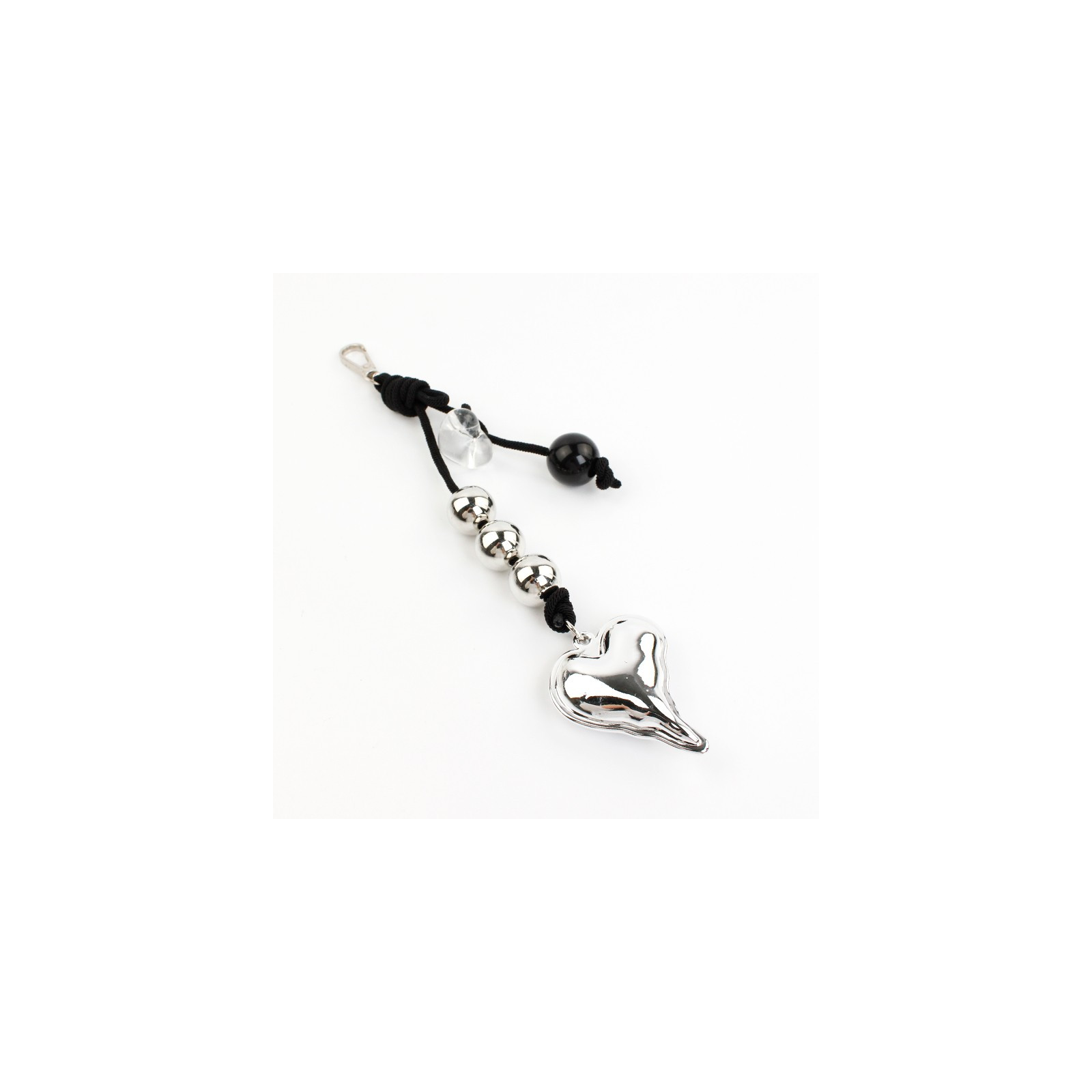Llavero de cordón diferenciado, con bolas pasantes de gran tamaño y dijes de corazón.