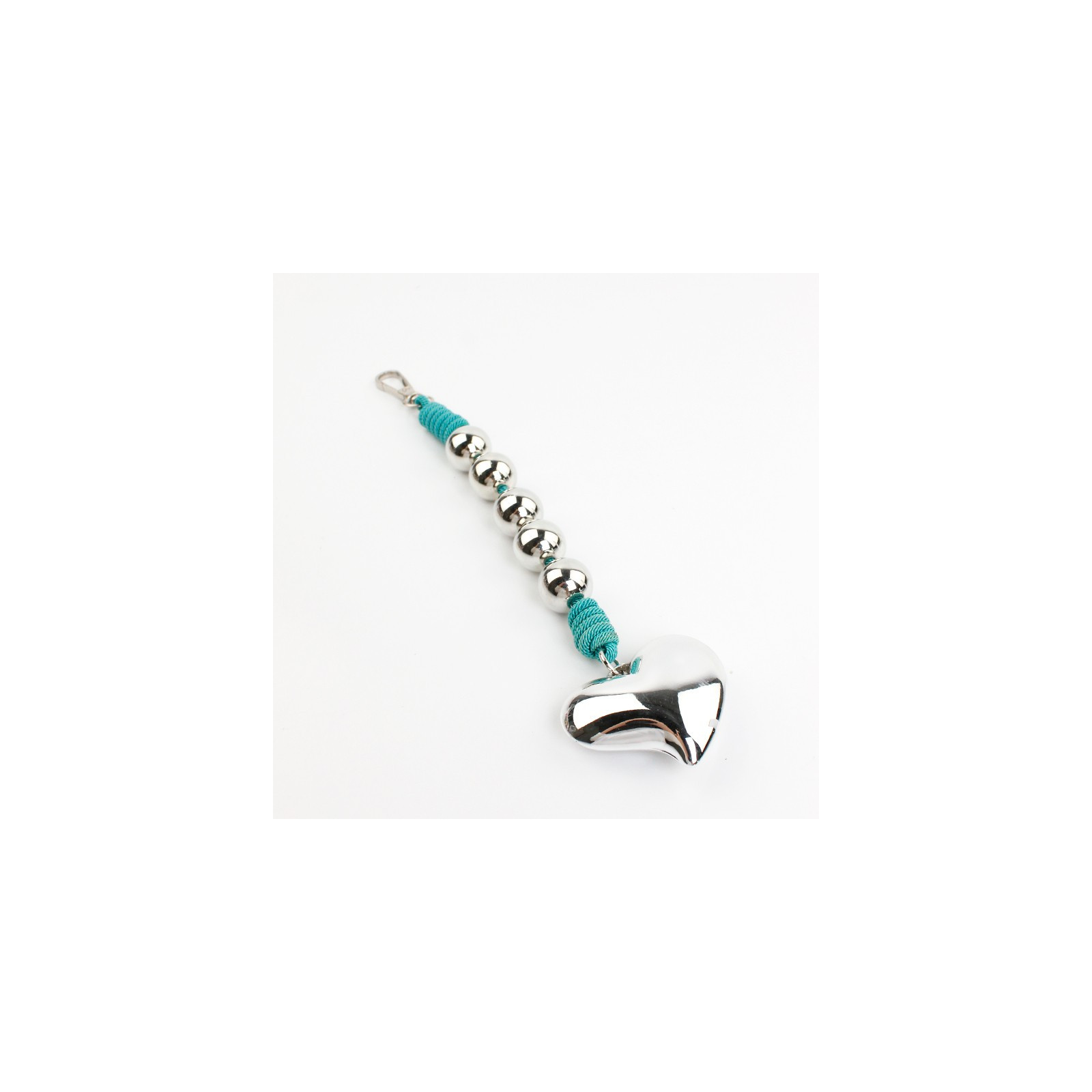 Llavero de cordón diferenciado, con bolas pasantes de gran tamaño y dije de corazón de CCB.