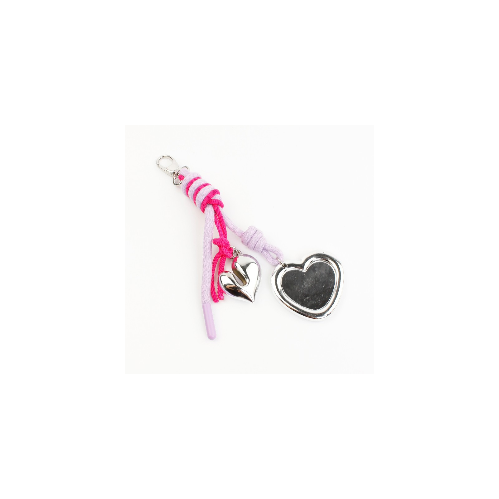 Llavero de cordones diferenciados con dijes exclusivos de CCB con forma de corazón espejado.