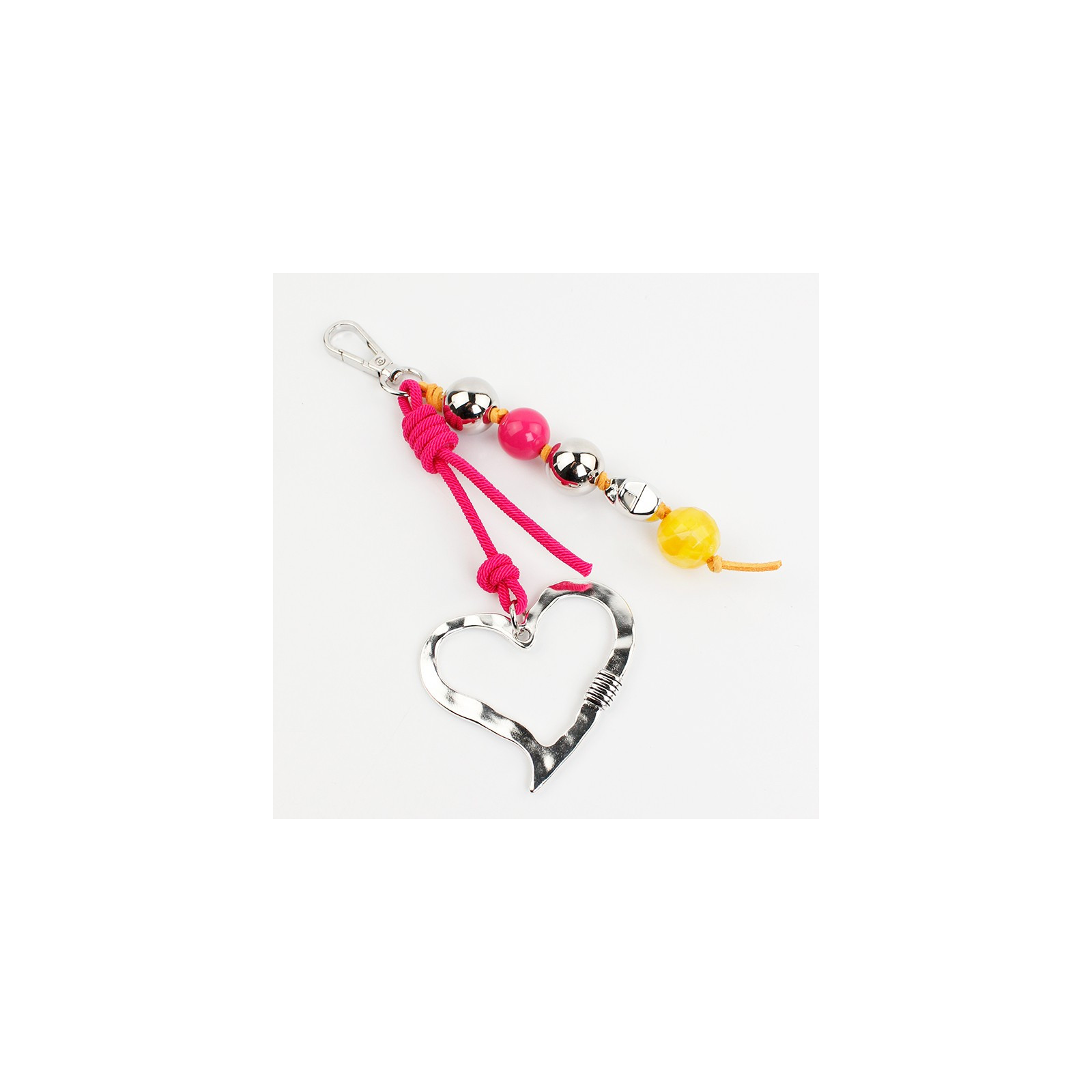 Llavero y bagcharm de cordón diferenciado con dije exclusivo de fundición y lazo de gamuza con piezas pasantes diferenciadas.