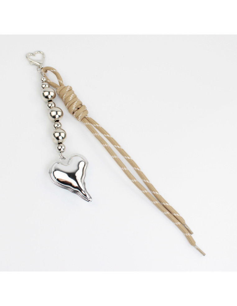 Llavero y bagcharms de cordón diferenciado combinado con piezas pasantes de CCB níquel y dije XL con forma de corazón.