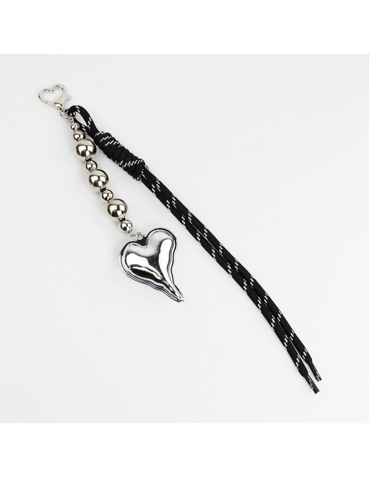 Llavero y bagcharms de cordón diferenciado combinado con piezas pasantes de CCB níquel y dije XL con forma de corazón.