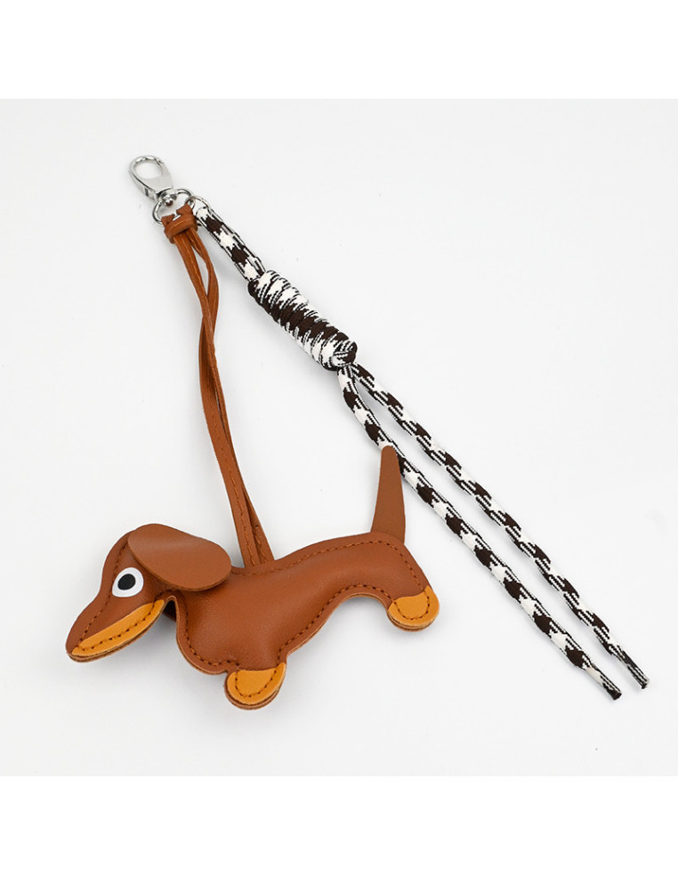 Llavero de cordón con pieza de PU en forma de perro salchicha.