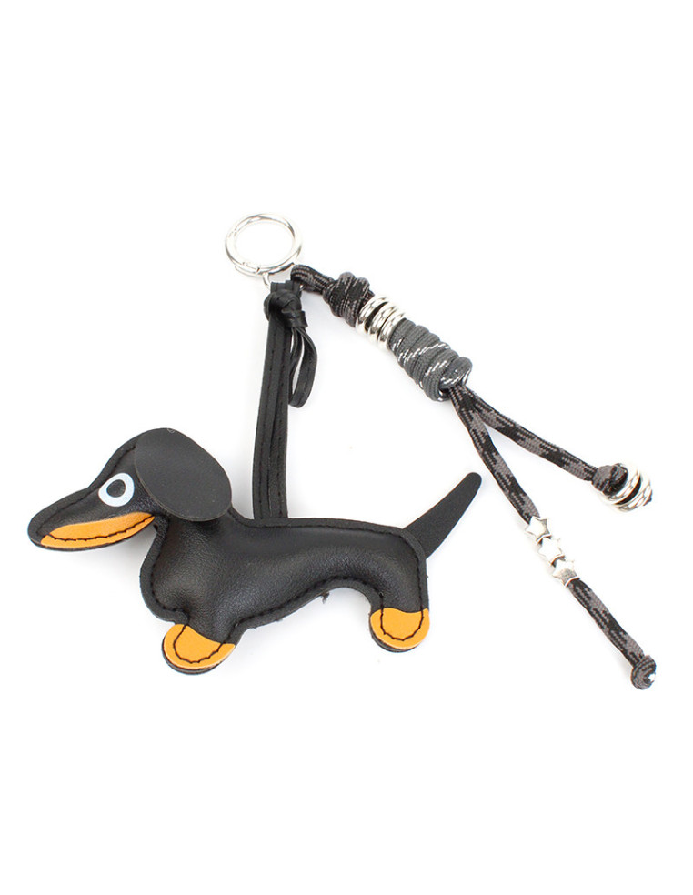 Llavero y bag charm de cordón, con pieza de PU con forma de perrito salchicha.