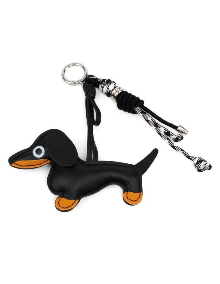 Llavero y bagcharm de cordón, con pieza de PU con forma de perro salchicha.
