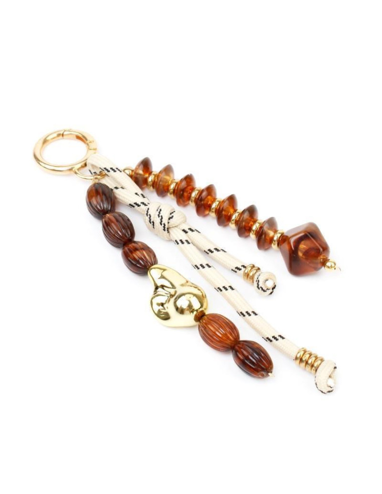 Llavero y bagcharm de cordón, con piezas de acrílico carey y pasantes de CCB.