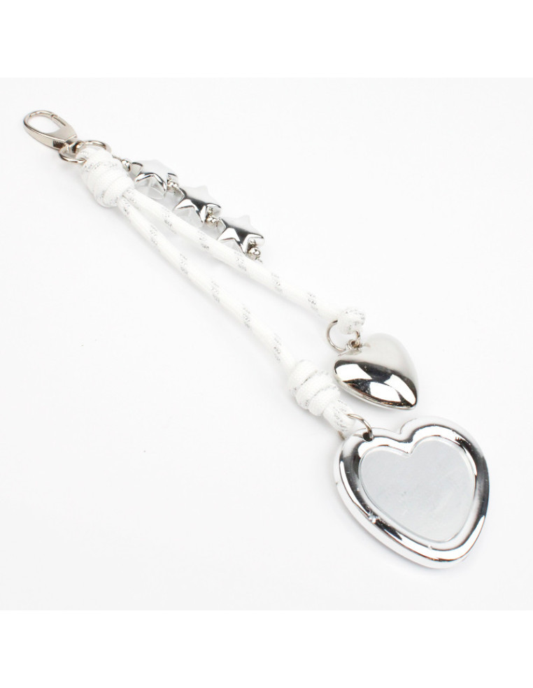 Llavero y bagcharm de cordón, con estrellas pasantes de CCB y dijes con forma de corazón con espejo incorporado.