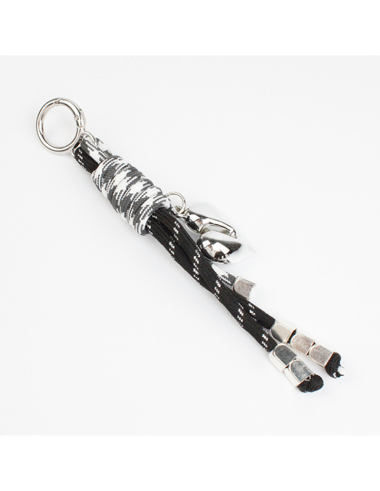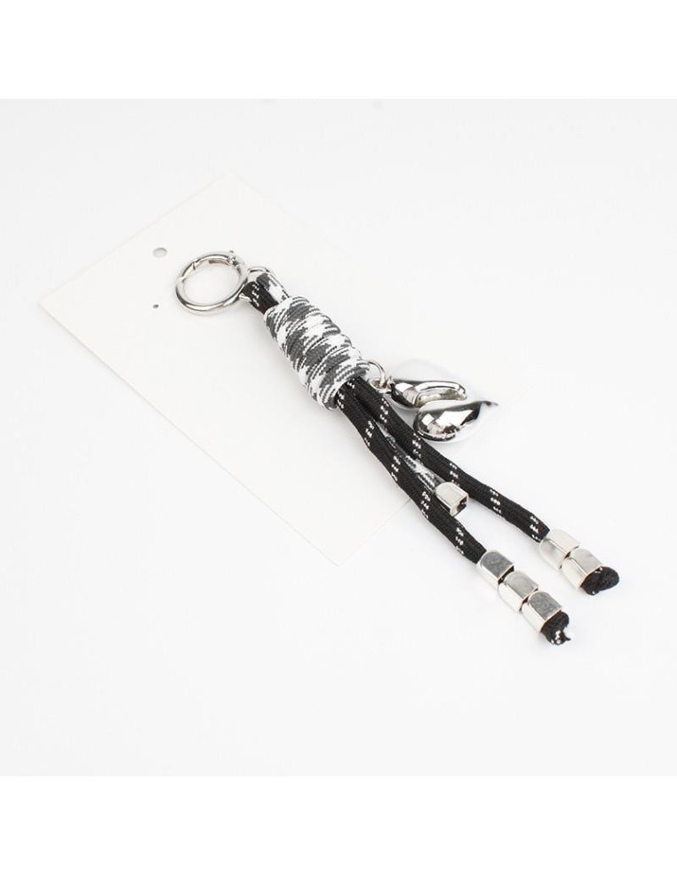Llavero y bagcharm de cordón con dije de CCB con forma de corazón terminales en punteras.