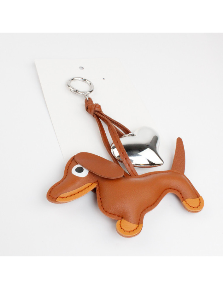 Llavero y bag charm de pieza de PU exclusiva con forma de perrito salchicha y dije de CCB.