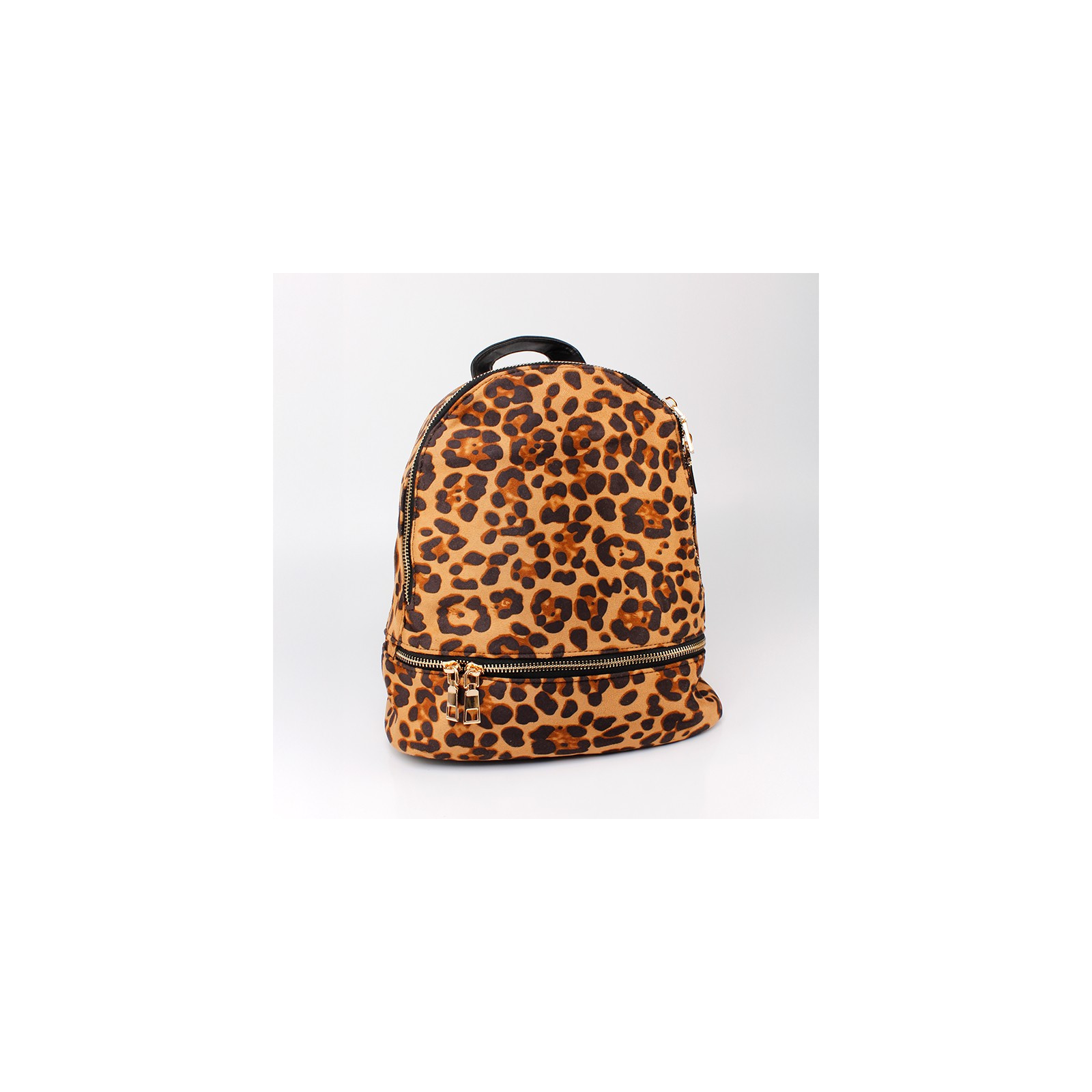 Mochila animal Print de gamuza y pu, con bolsillo interno y externo.