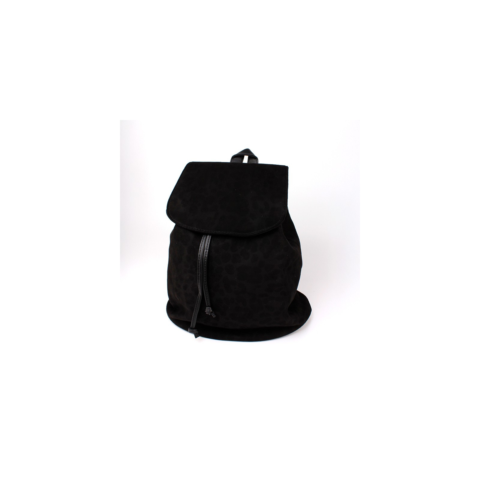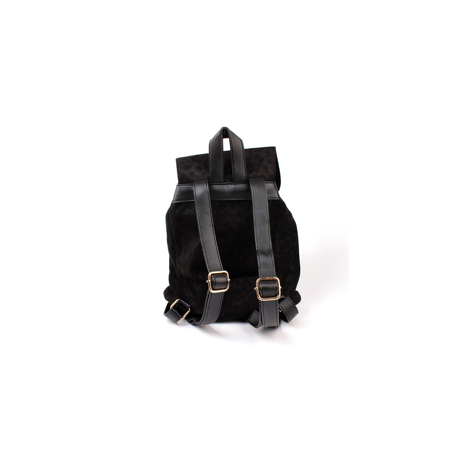 Mochila animal Print de gamuza con solapa de apertura y tiras de PU regulables. Cierre imantado y bolsillo interno.