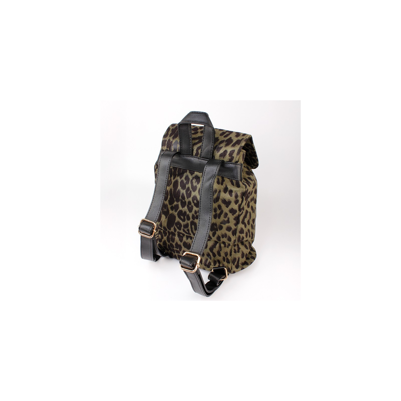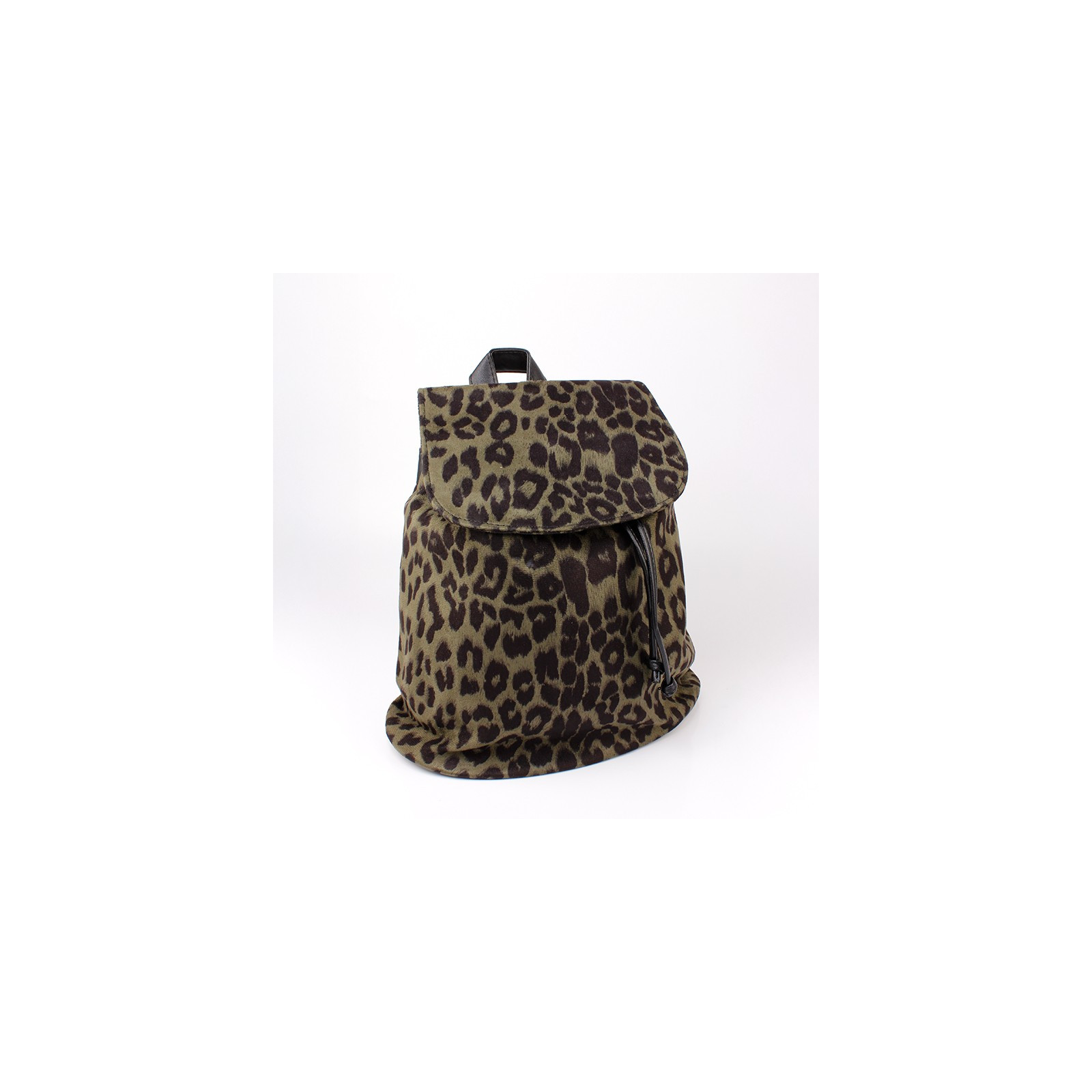 Mochila animal Print de gamuza con solapa de apertura y tiras de PU regulables. Cierre imantado y bolsillo interno.