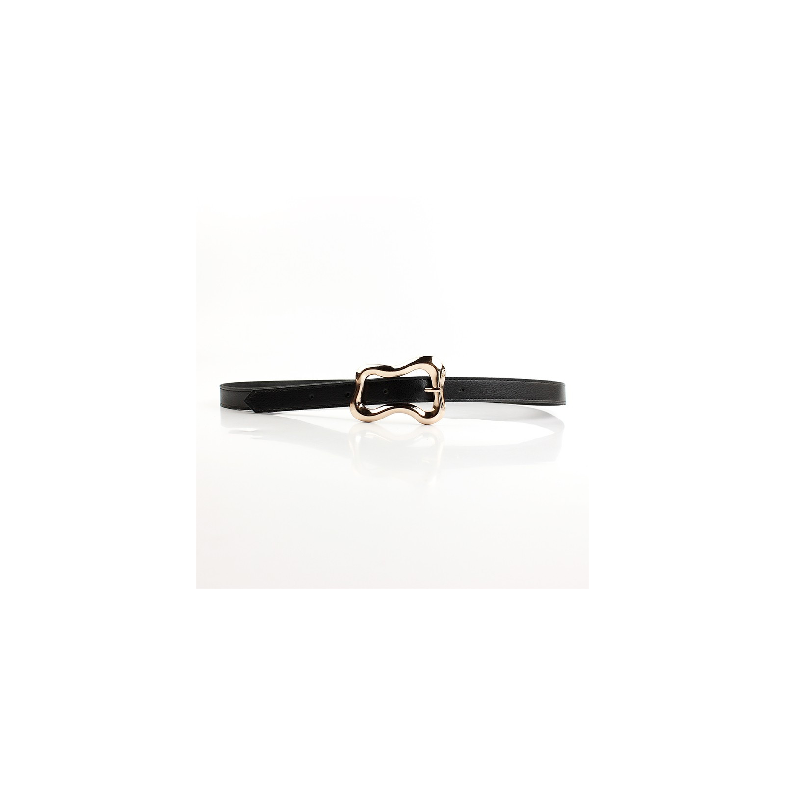 Cinturón liso de PU con hebilla dorada.