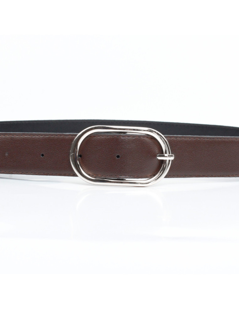 Cinturon liso de PU con hebilla níquel. Mediada 3.5 x 110 cm.
