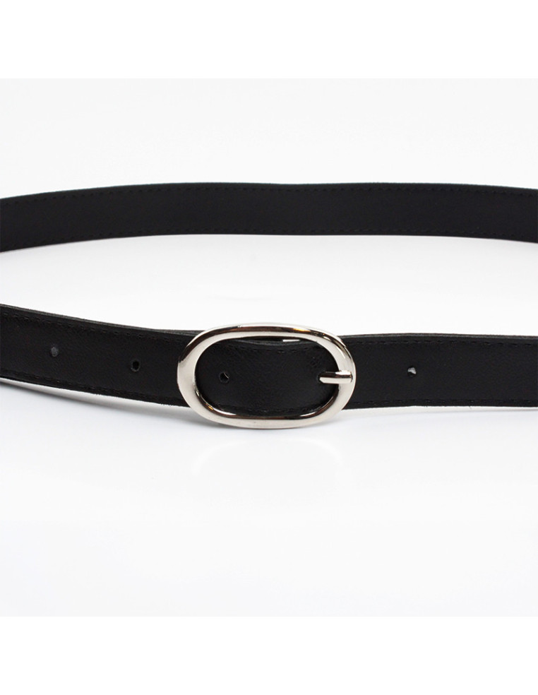 Cinturón liso de PU con hebilla níquel.