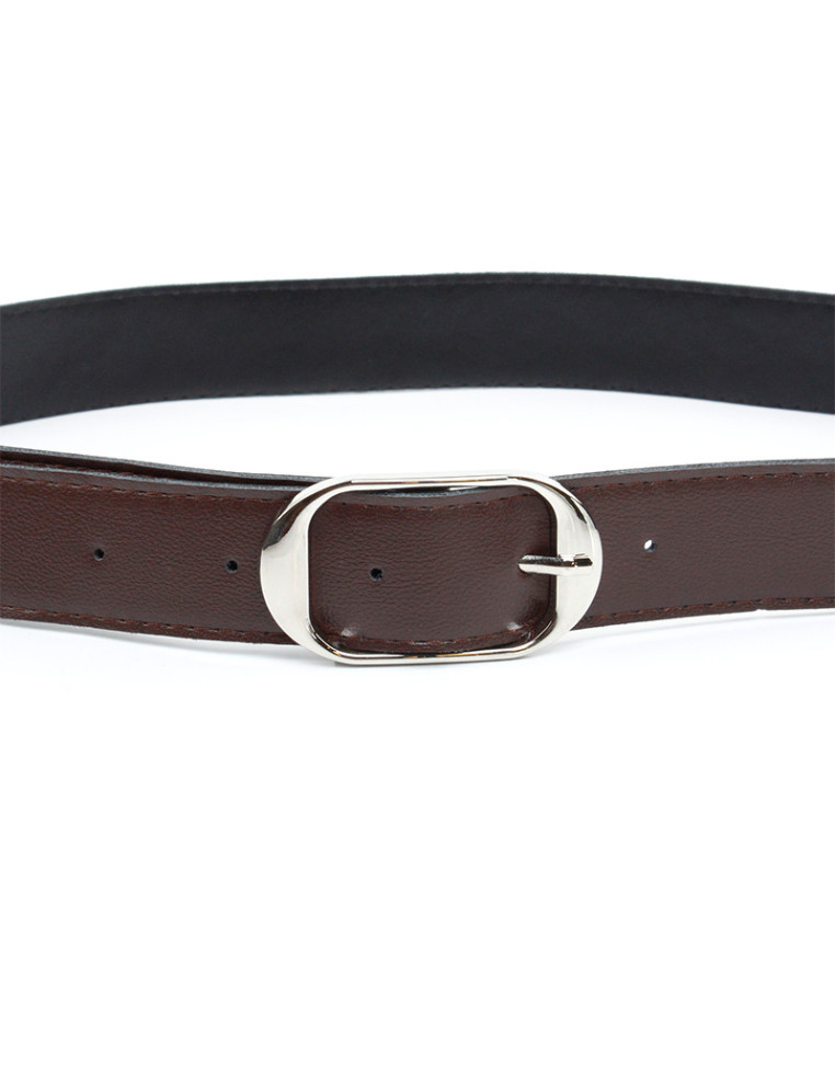 Cinturón liso de PU con hebilla níquel.Mediada 2.5 x 110 cm.