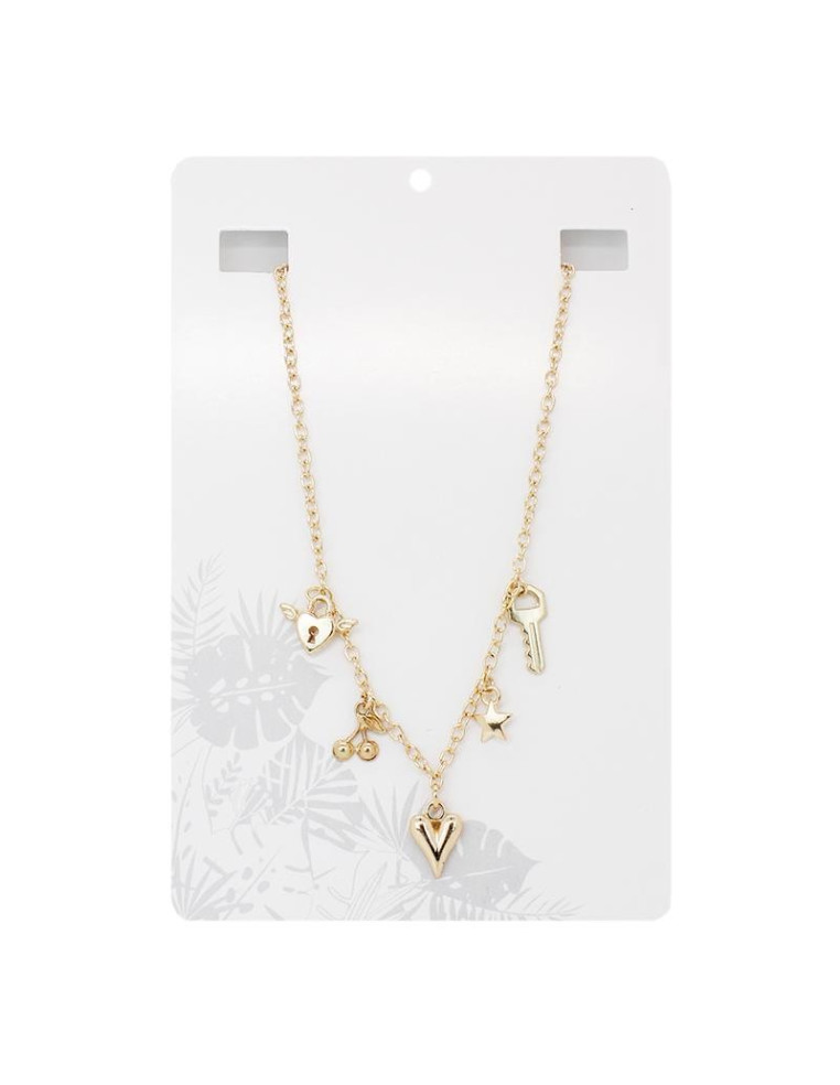 Collar corto de cadena diferenciada con multiples dijes exclusivos dorados.