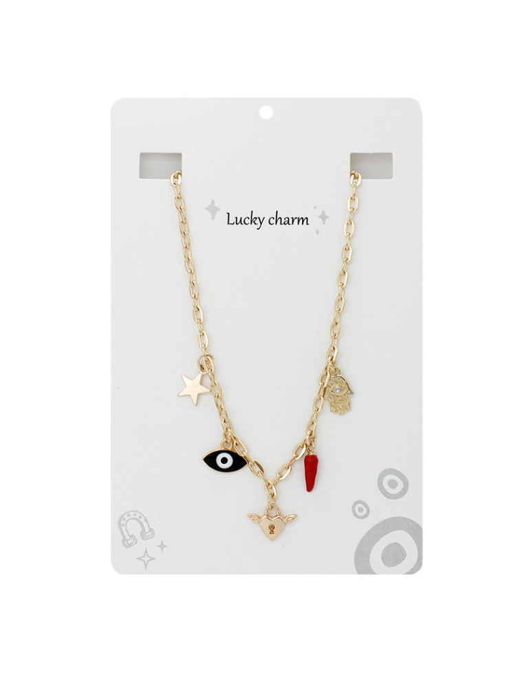 Collar de cadena diferenciada con dijes exclusivos dorados y pintados a mano.
