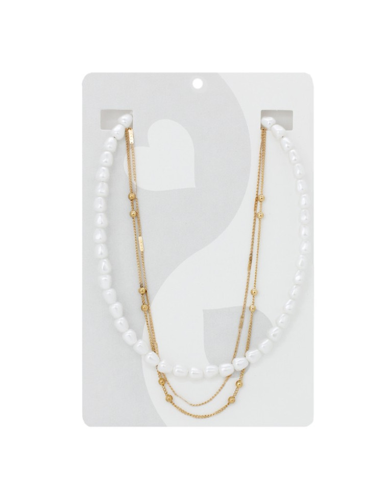 Set de dos collares de cadena diferenciada con perlas blancas.