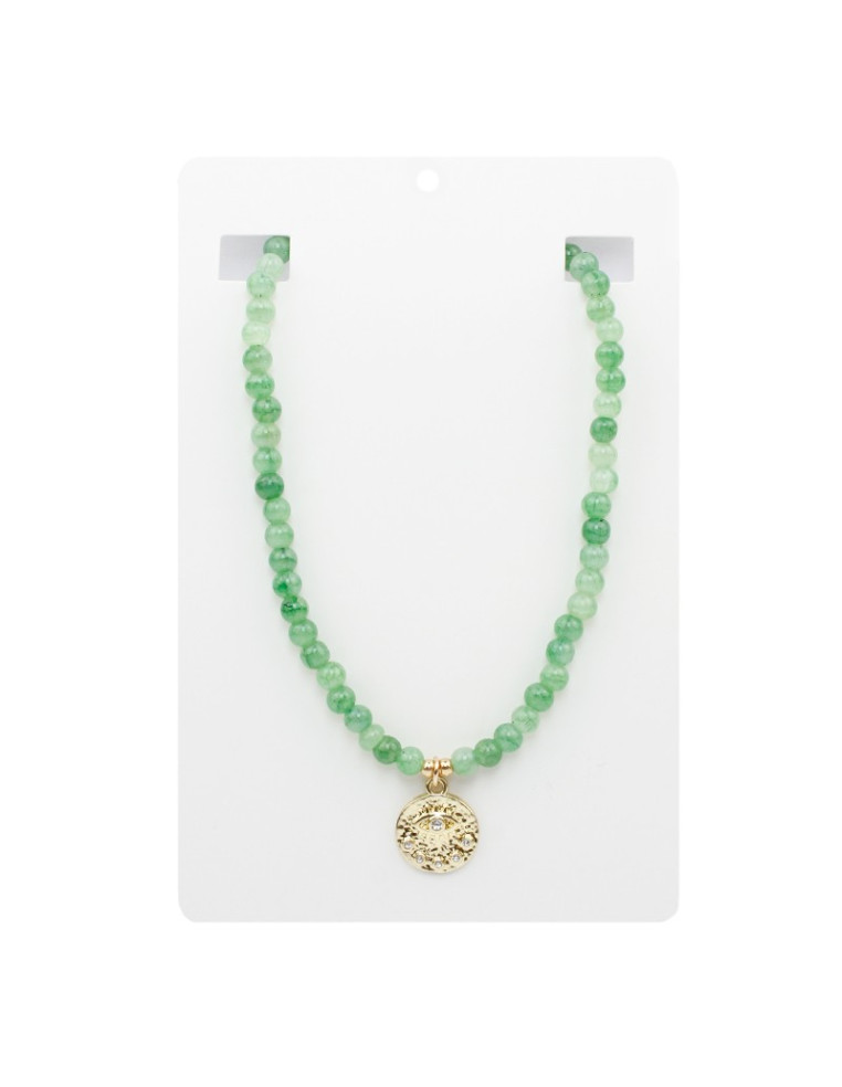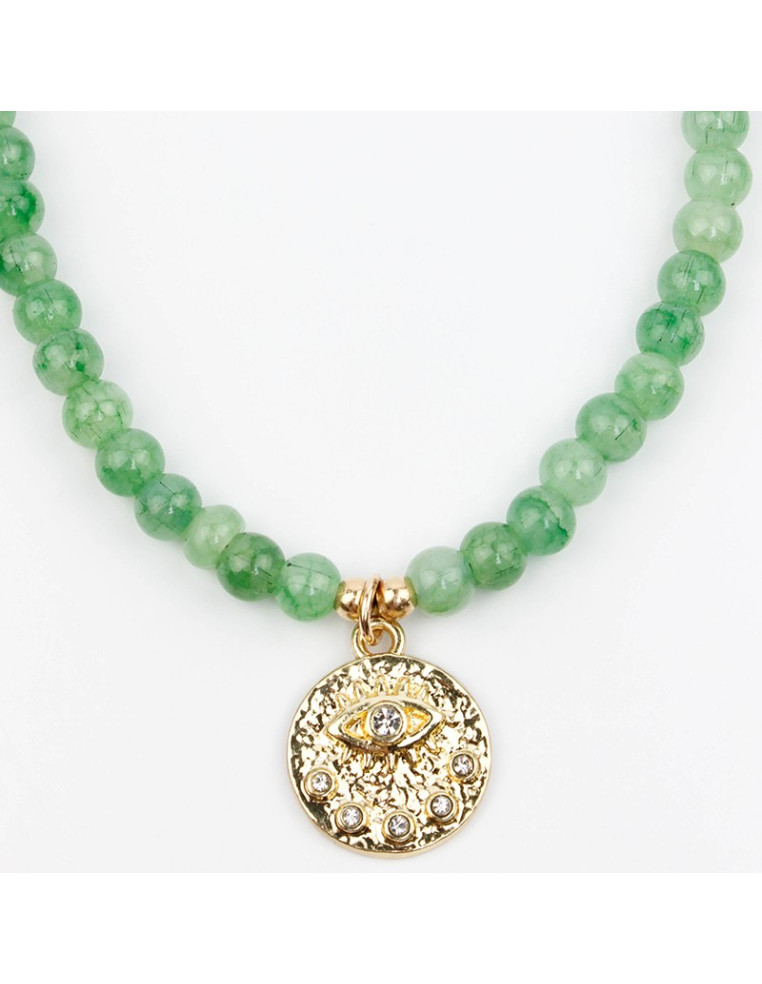 Collar de piezas de vidrio con dije exclusivo de strass dorado.