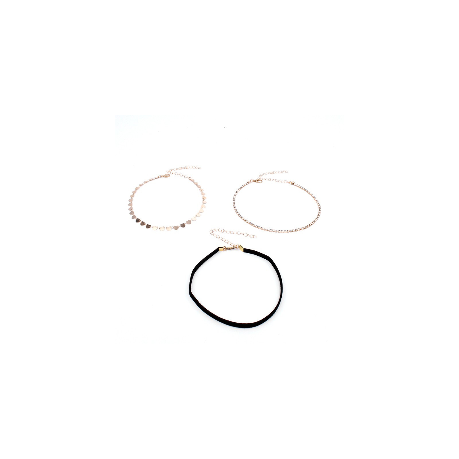 Set de tres Chocker de gamuza y de cadenas diferenciadas doradas.