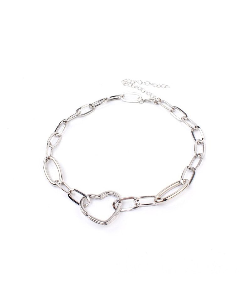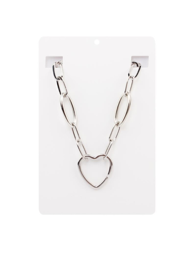 Collar corto de cadena diferenciada e intervenida con dije exclusivo con forma de corazón níquel.