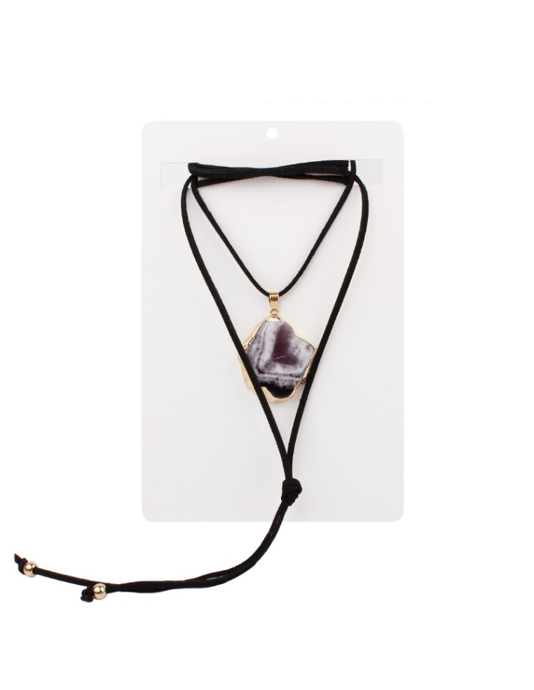 Collar corbatero de gamuza con piedra natural.