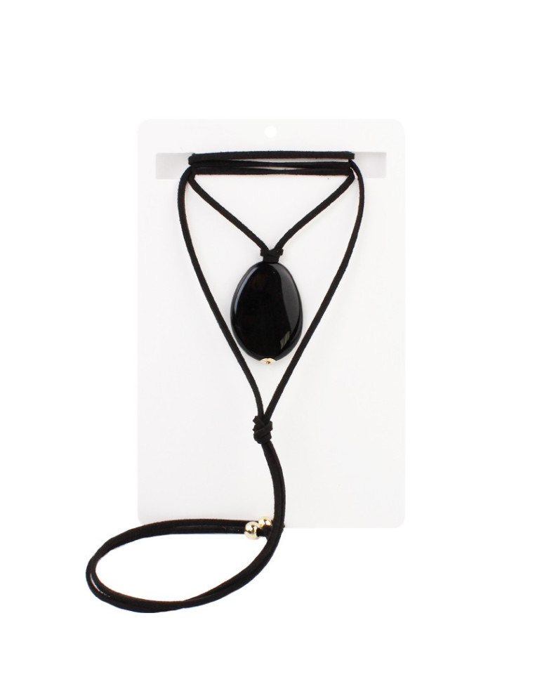 Collar de múltiples vueltas de gamuza con dije exclusivo de acrílico y terminales en punteras.