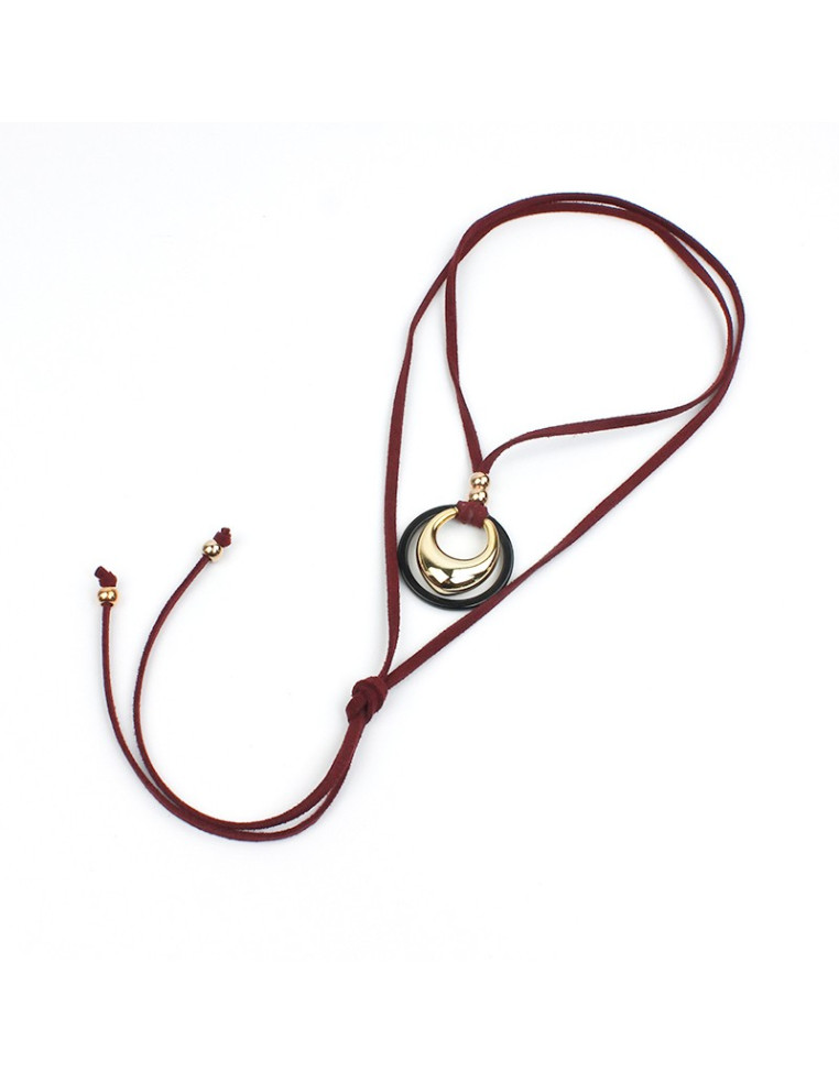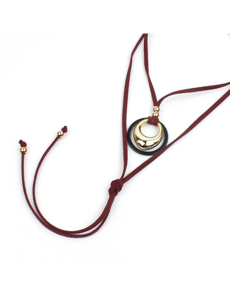 Collar de gamuza de múltiples vueltas con dije exclusivo de circulos concéntricos de CCB y acrílico, con terminales en punteras.