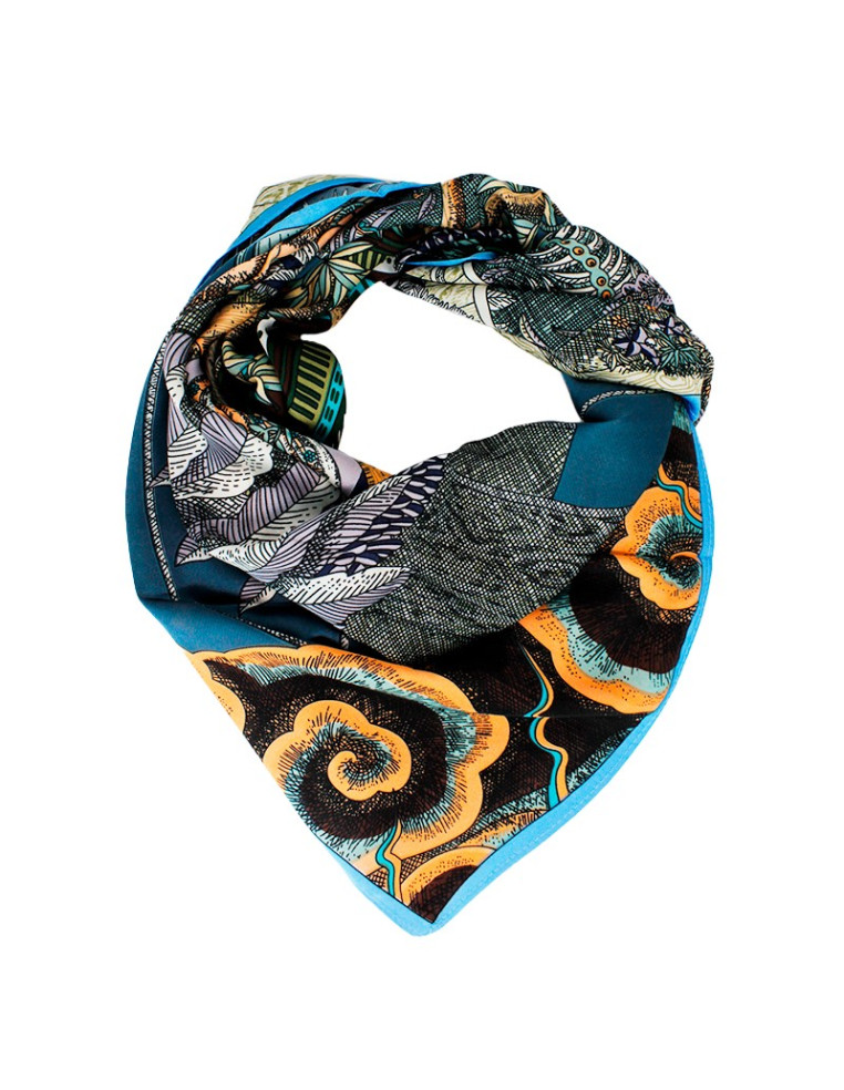 Pañuelo de 90x90 tela seda con estampa en ambos lados.
