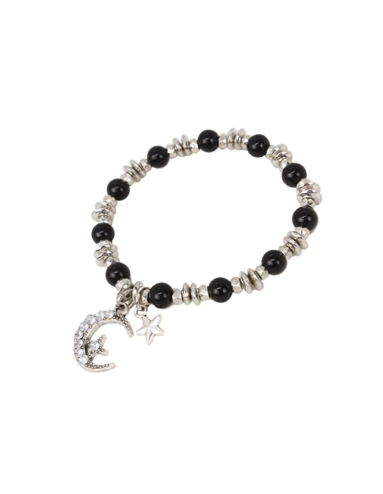 Pulsera elástica de piezas de vidrio con dijes exclusivos intervenidos con strass níquel.