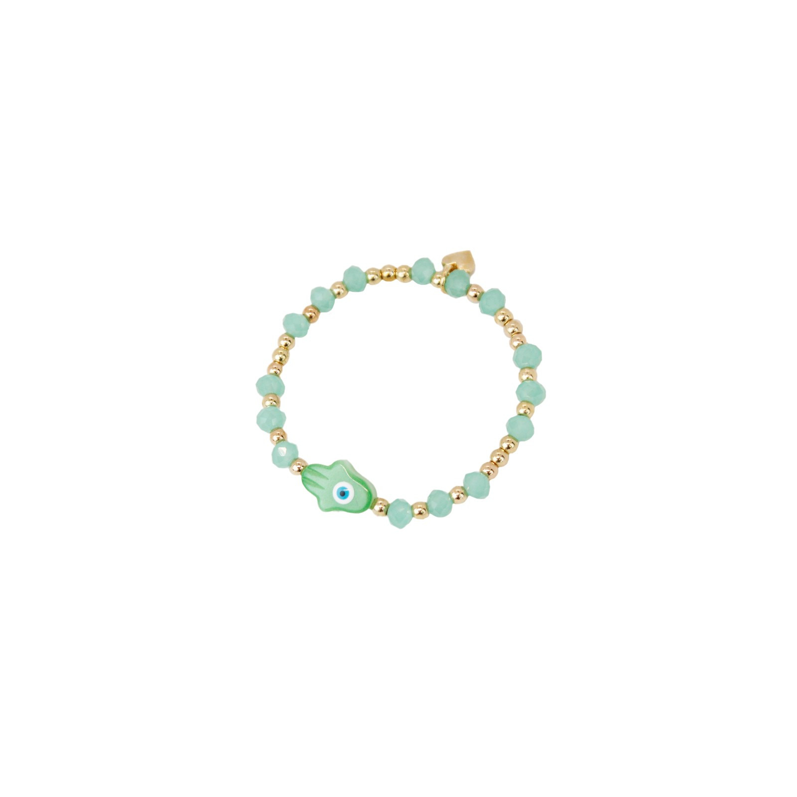 Pulsera elástica de rocas de cristal con dije exclusivo de vidrio pintado a mano.