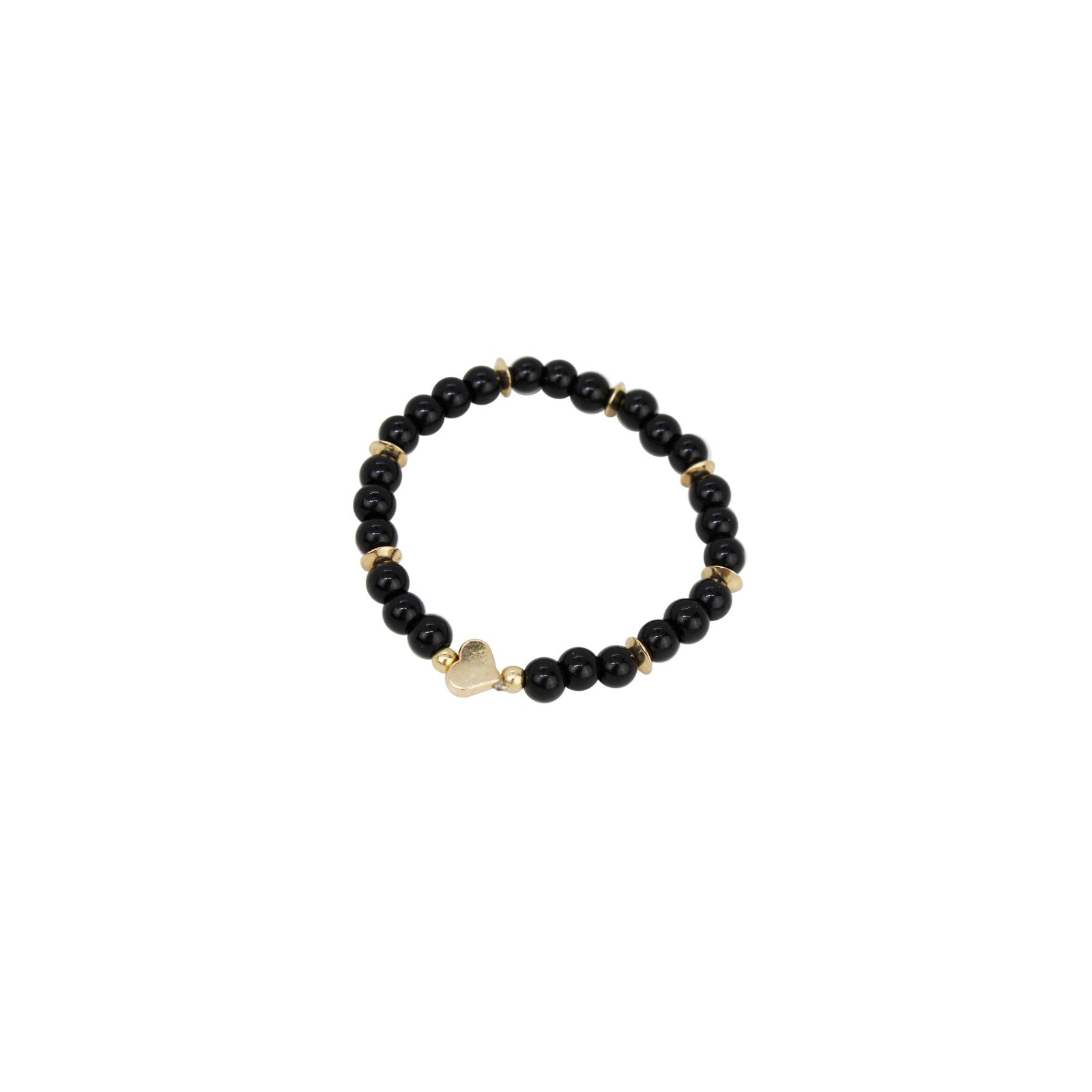 Pulsera elástica de piezas de vidrio con dijes exclusivos dorados.
