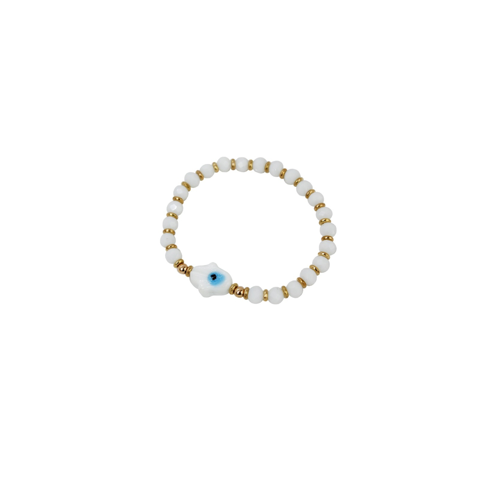 Pulsera elástica de rocas de cristal con dije exclusivo de vidrio pintado a mano.