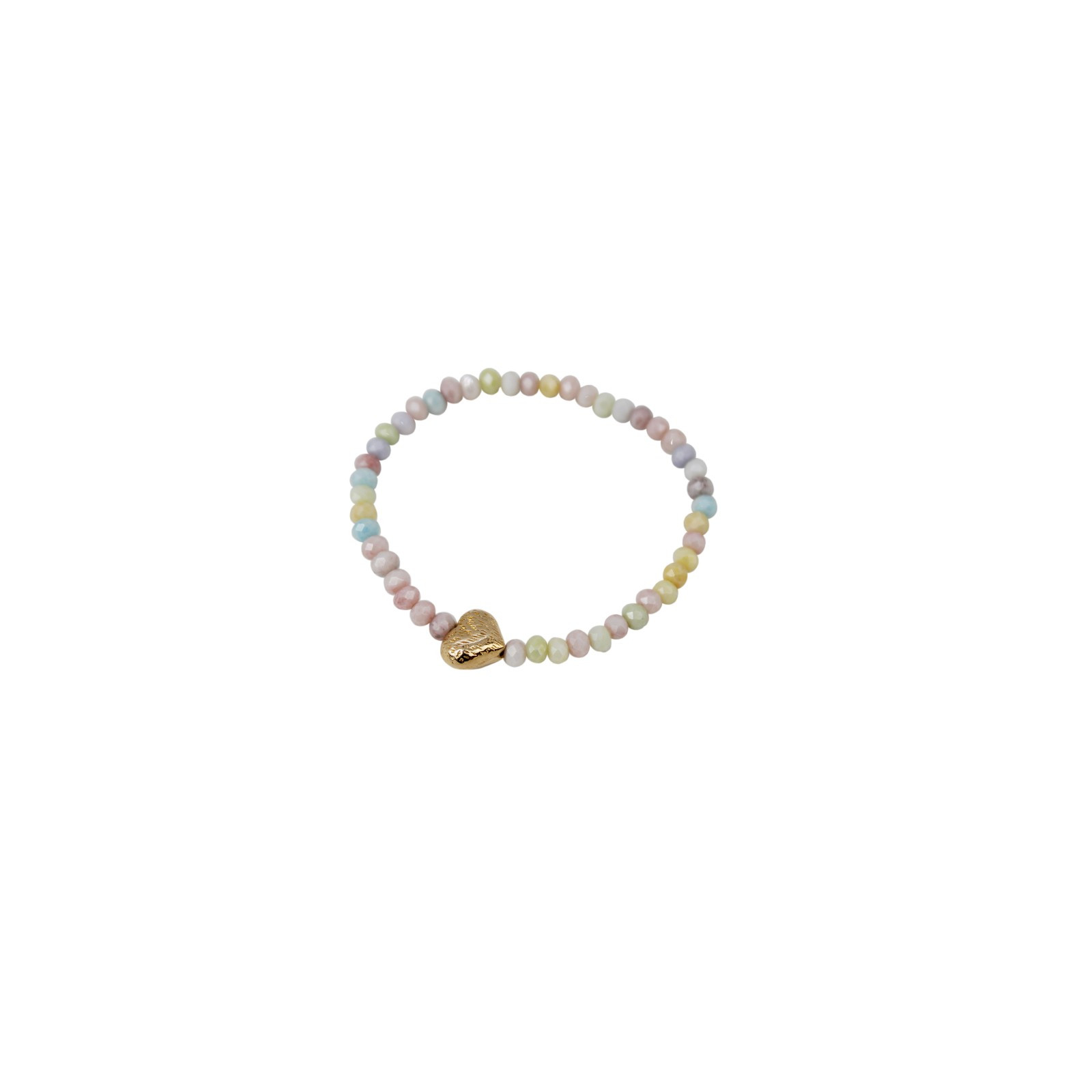 Pulsera elástica de roca de cristal con dije exclusivo dorado.