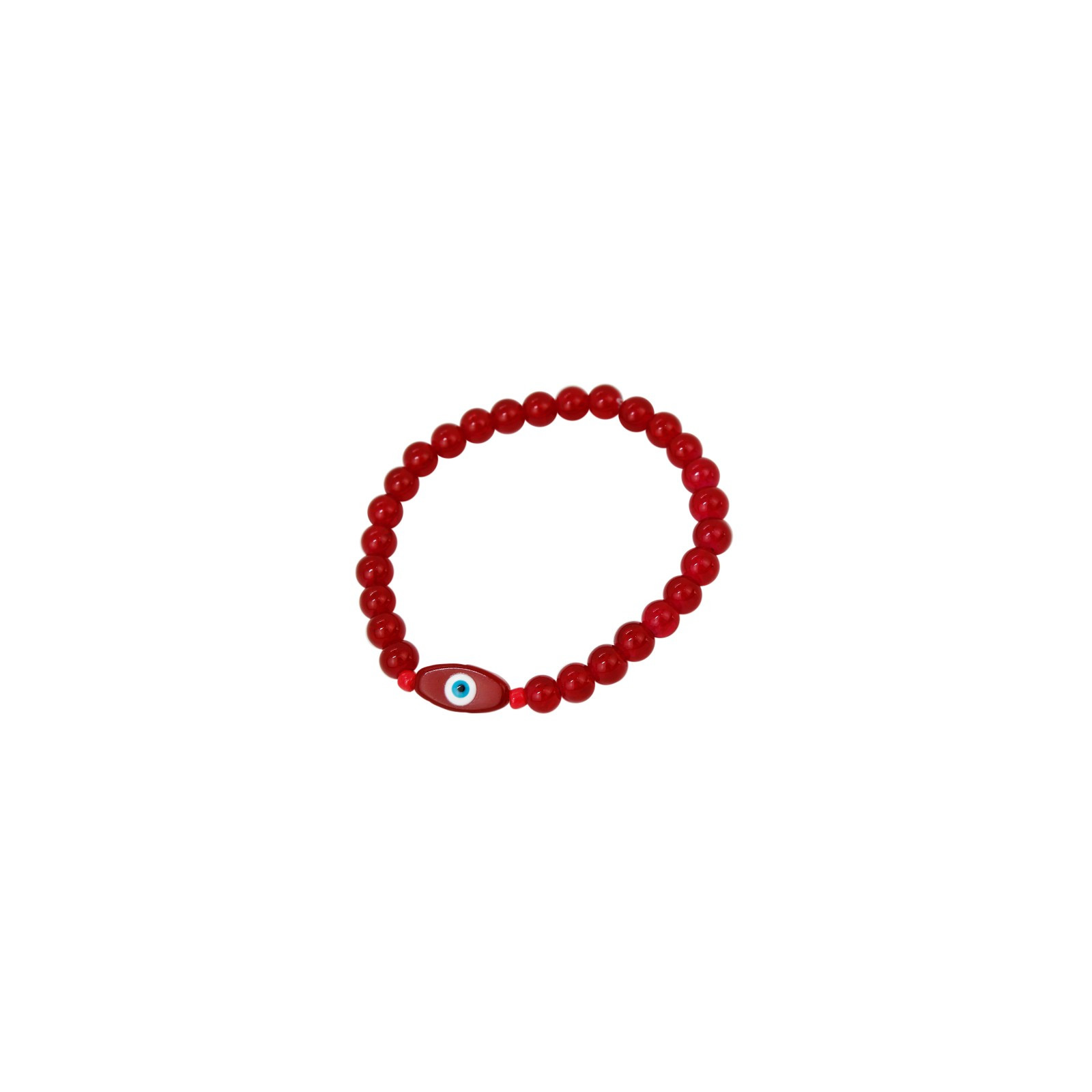 Pulsera elástica de piezas de vidrio con ojo exclusivo pintado a mano de cerámica.